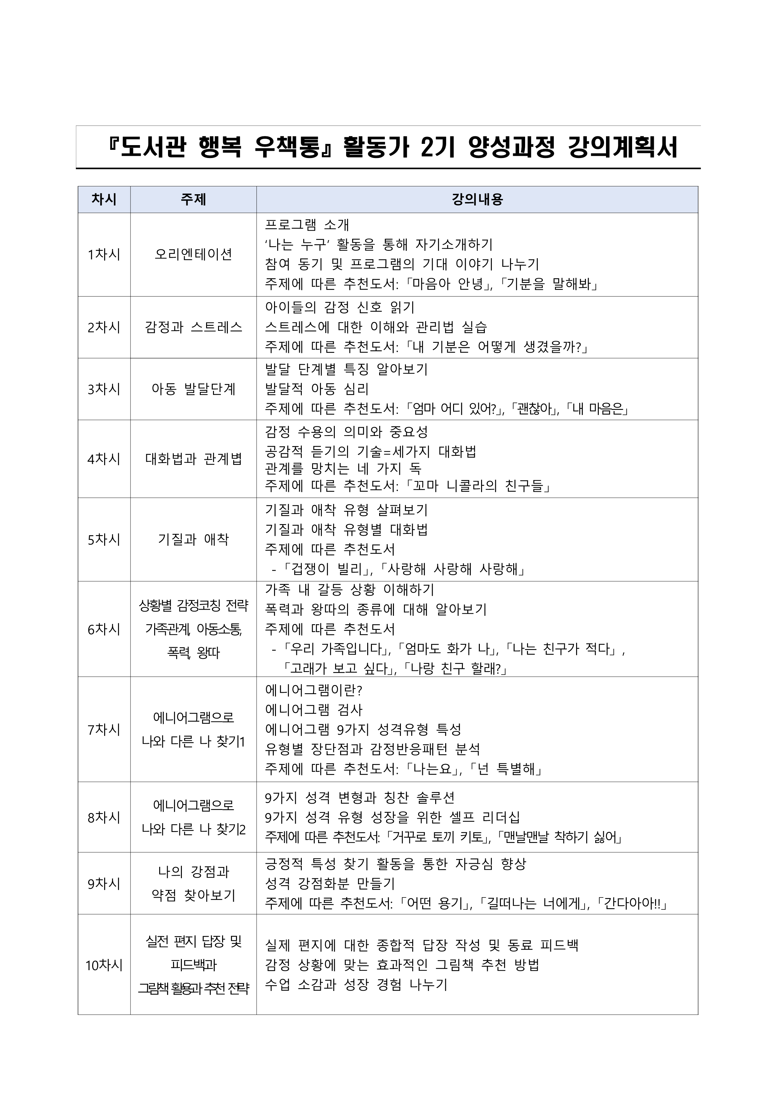 ○ 강 좌 명: 『도서관 행복 우책통』 활동가 2기 양성과정