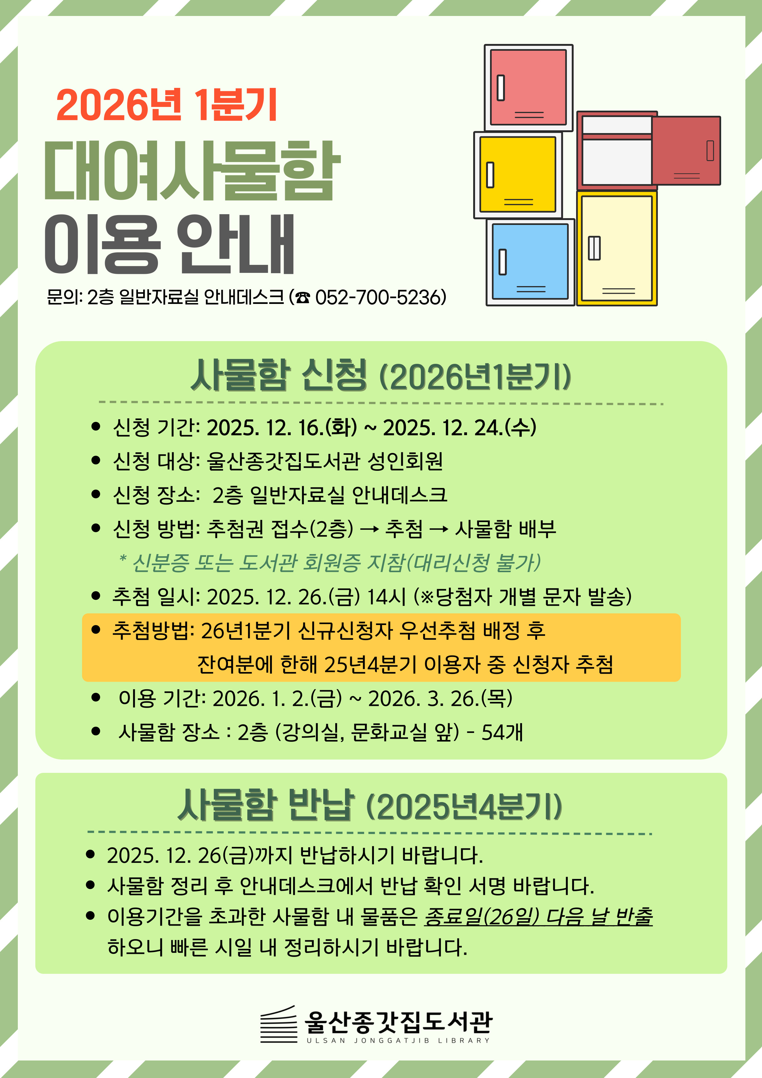 [2026년 1분기 울산종갓집도서관 사물함 신청·반납안내]