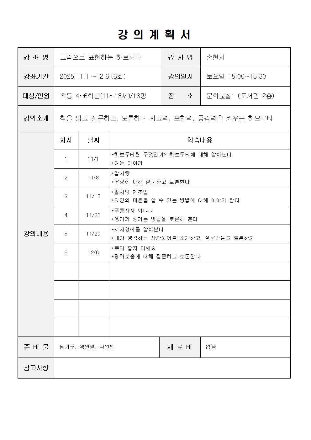 ※ 모든 강좌는 도서관 운영상황에 따라 강사, 일정, 장소 및 운영방법이 변경되거나 폐강될 수 있음.