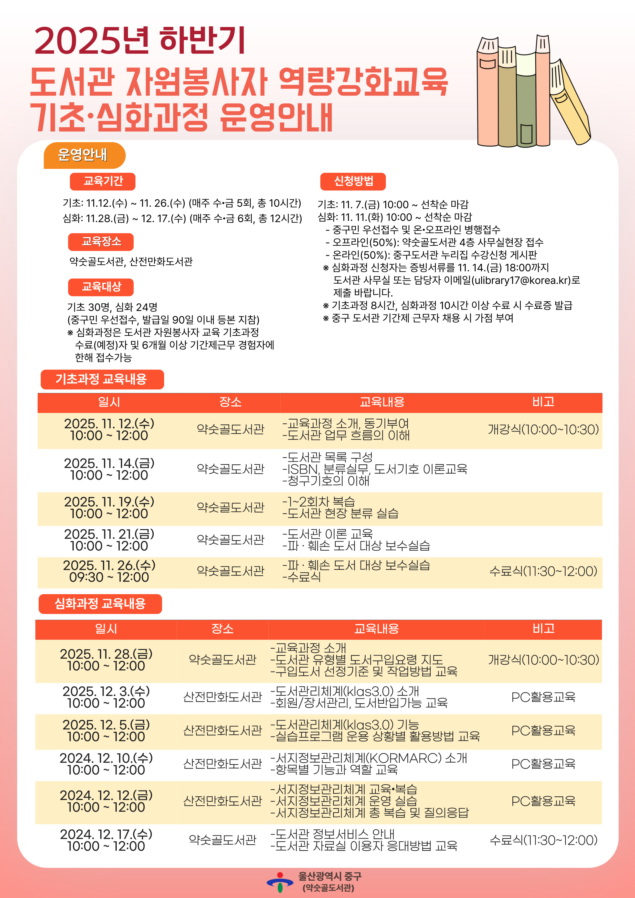 [약숫골도서관]2025년 하반기 도서관 자원봉사자 역량강화교육 기초과정