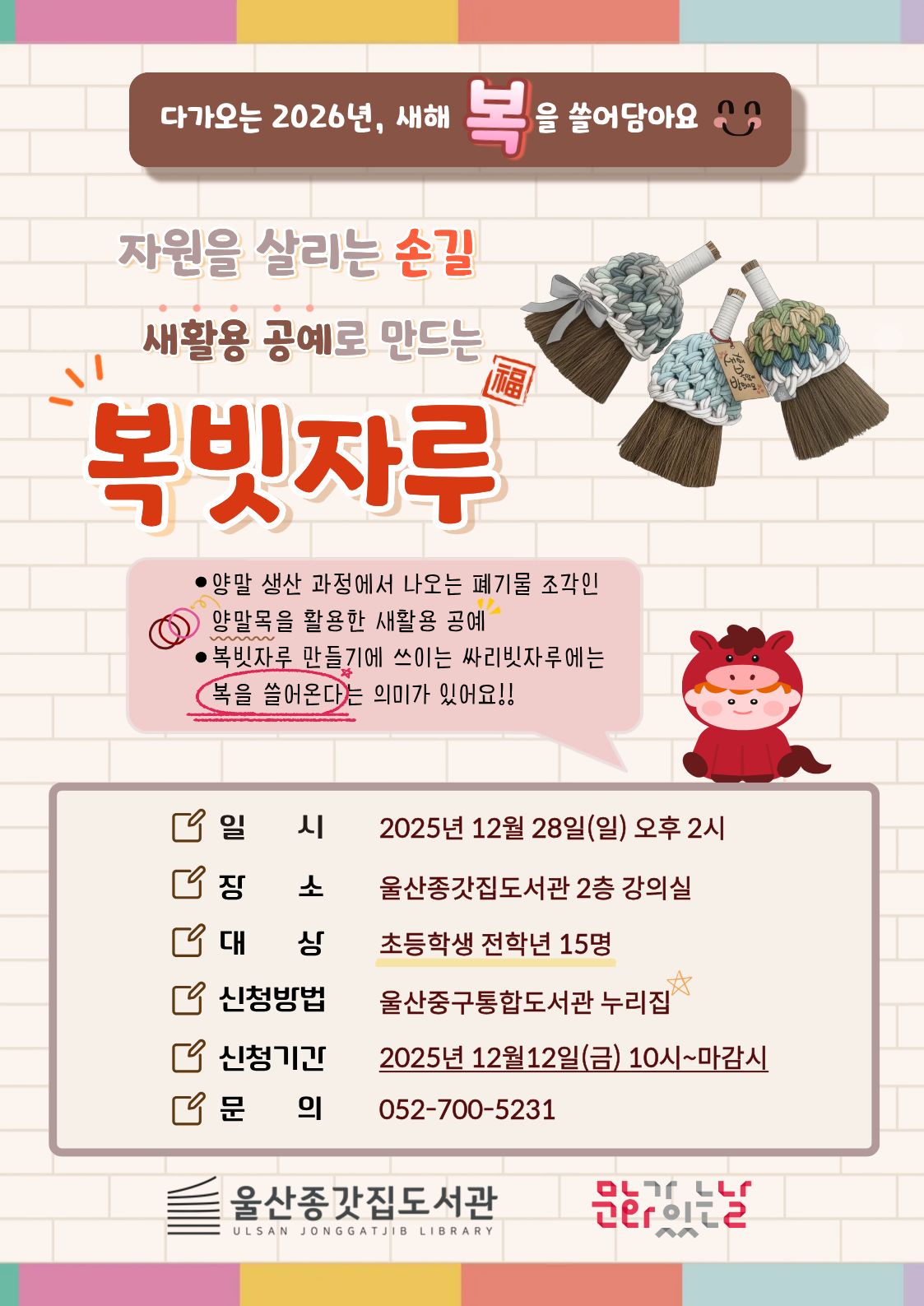 내 용: 새활용 공예를 활용한 양말목 복빗자루 만들기