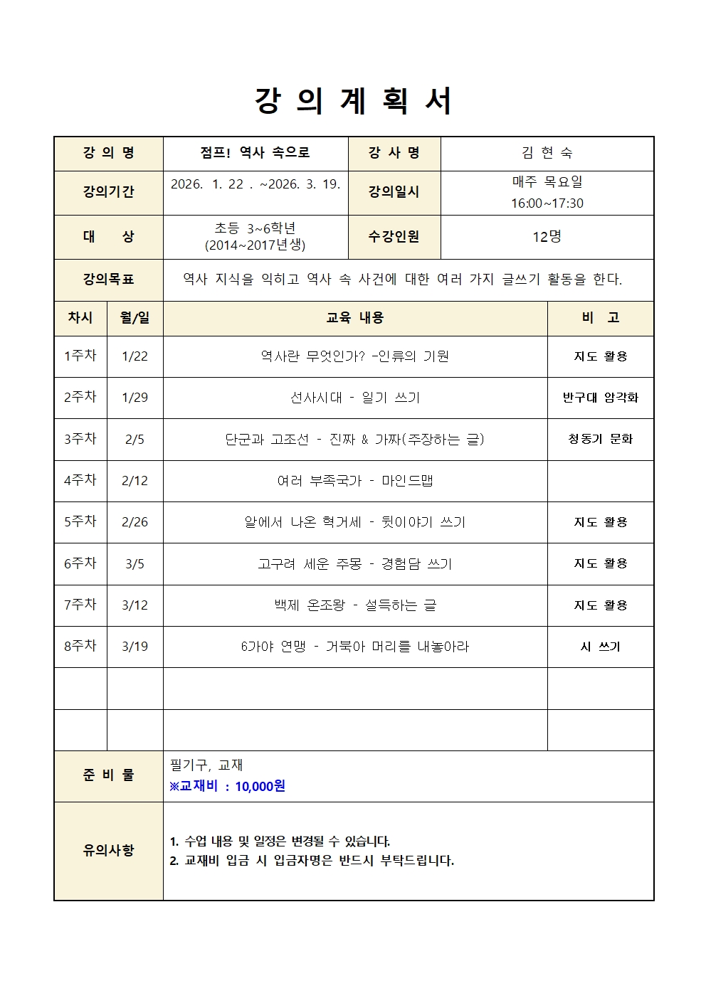 ※ 재료비가 있는 강좌의 경우 강사님께 개별 납부 부탁드립니다.