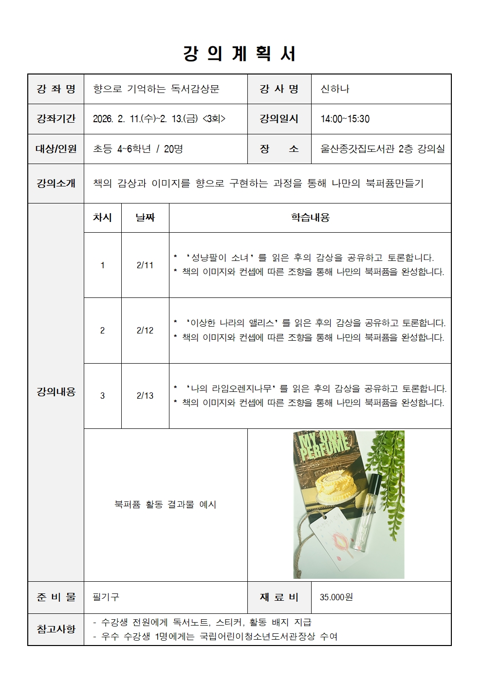 [울산종갓집도서관][방학특강] (독서교실) 향으로 기억하는 독서감상문