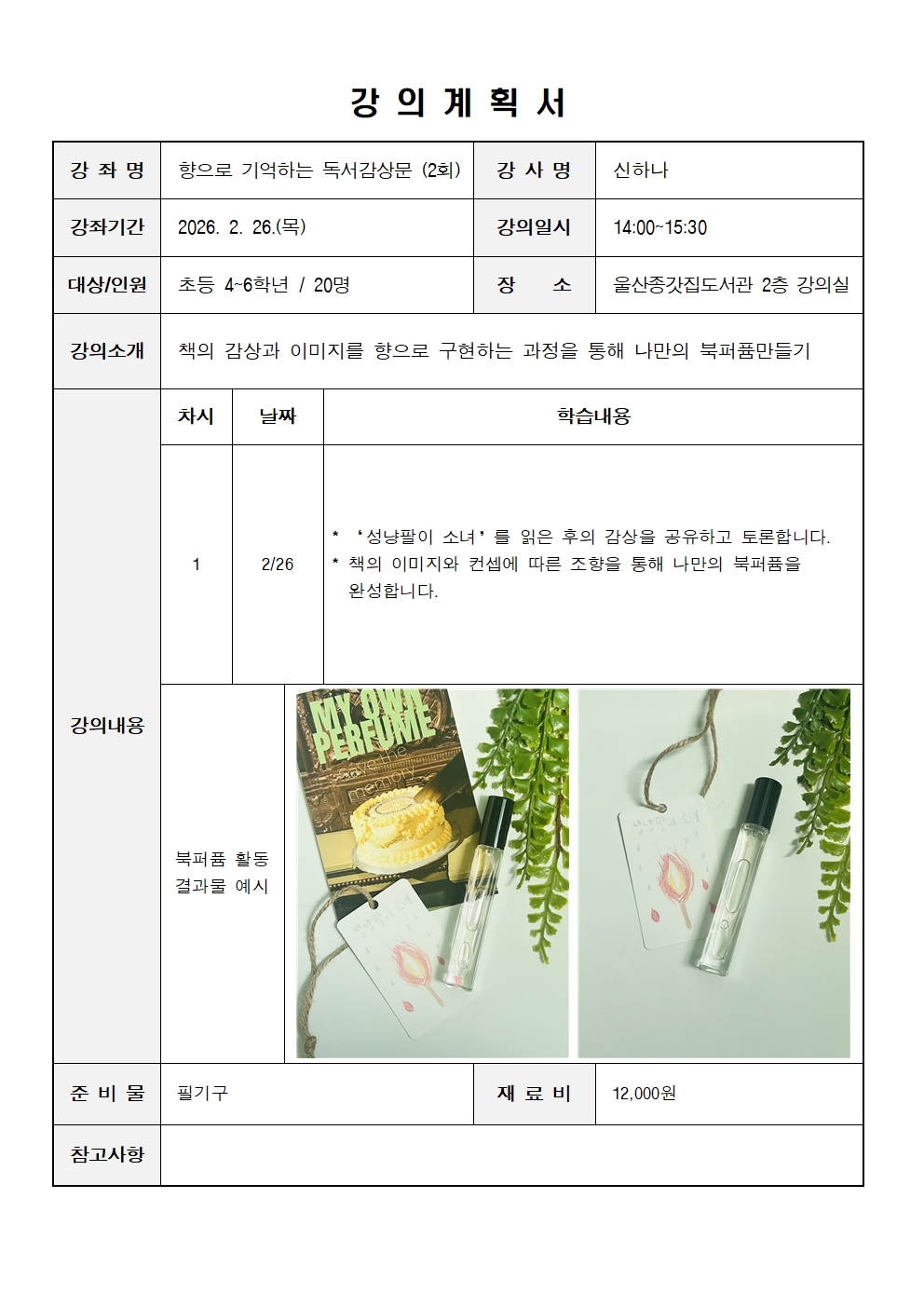[울산종갓집도서관][방학특강] (독서교실) 향으로 기억하는 독서감상문 (2회)