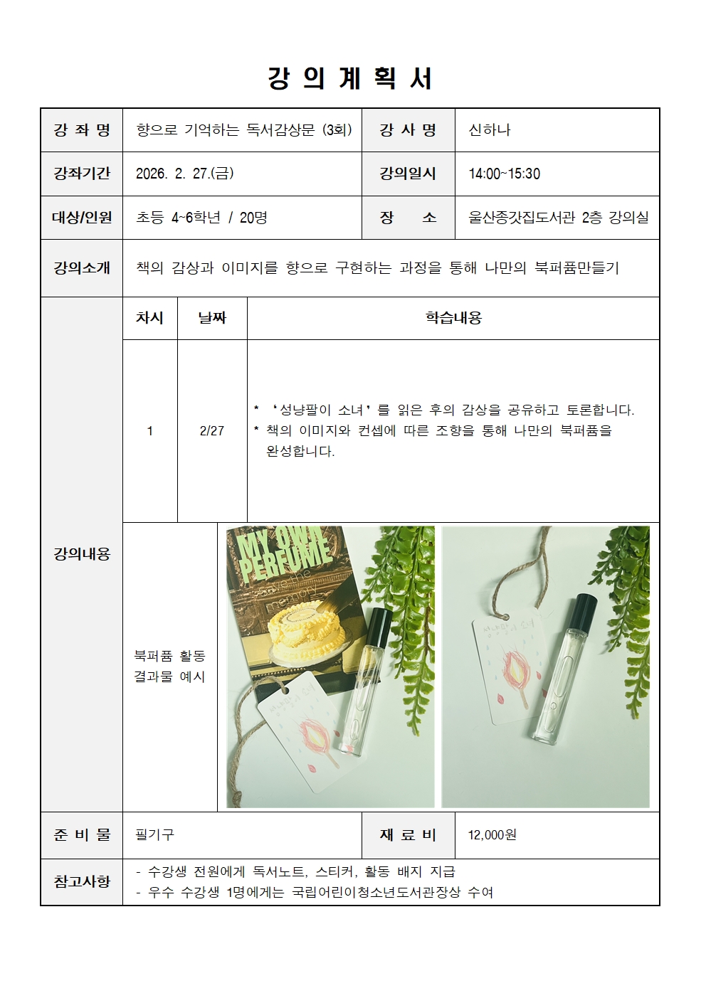 [울산종갓집도서관][방학특강] (독서교실) 향으로 기억하는 독서감상문 (3회)